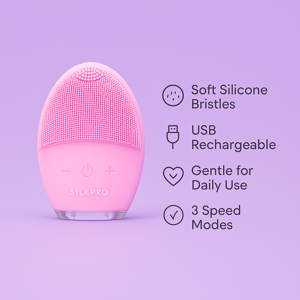 Give your skin the gentle deep-clean it deserves with SILKPRO™, the 3-in-1 silicone cleansing brush designed to lift dirt, oil, and dullness — all while being soft enough for daily use.